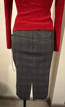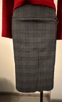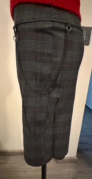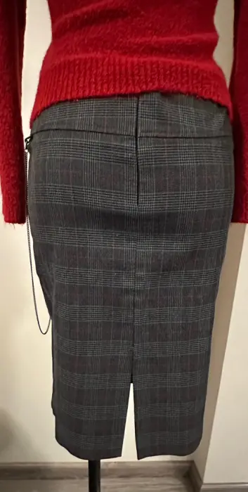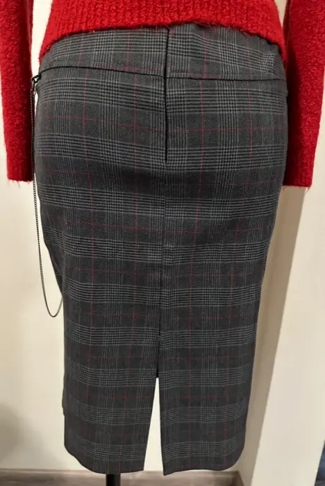 Falda lápiz para de gallo. Falda ajustada con detalle de cadena en el costado y abertura atrás