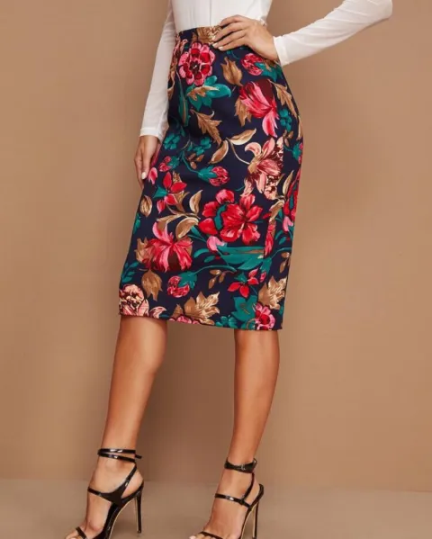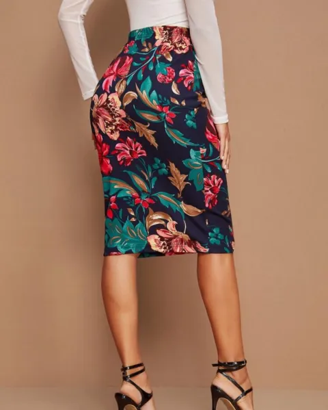 Falda Lápiz Shein con estampado floral. Bellísima falda con estampado floral, tiene una caída y ajuste perfectos, es talla M de Shein.
