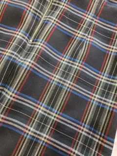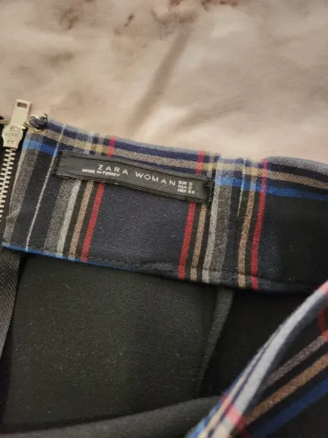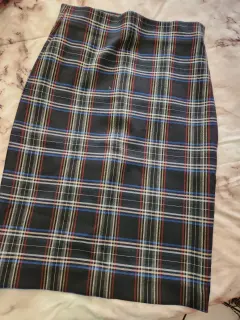 Falda lapiz zara, color gris, rojo, azul marino y negro estampado cuadrado.Talla S.Tela con elastico y cierre trasero y abertura trasera.