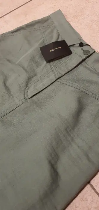Falda larga de lino de Massimo dutti. Falda color verde claro, es larga y tiene abertura en la parte de enfrente. Tiene bolsas a los lados. Es de tiro muy alto. Viene marcada como talla XS pero creo que queda mejor a una S, viene amplia. Nueva y con etiqueta