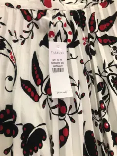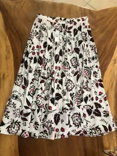 Falda Larga Talbots. Falta de vestir tableada larga blanca con vivos rojos y negros súper linda Talla 4, Marca Talbots tiene forro en la parte interna por lo cual no se transparenta