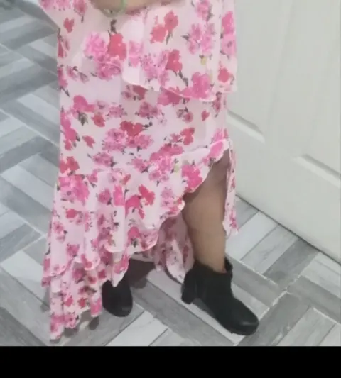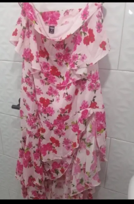 Linda!! Falda tipo seda color rosa floreada talla G 💓💓💓💅💅💅💅con avertura en la pierna puesta 1 vez excelente condiciones
