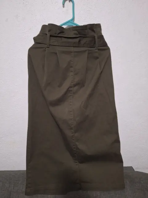 Falda verde militar, una puesta con avertura al frente, orma padrisimo, talla 7 a la cintura.
