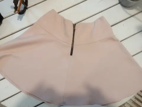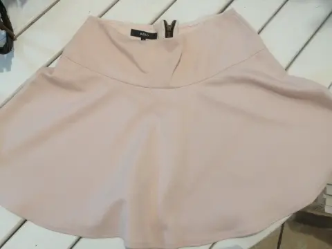 Falda corta, con corte circular, color palo de rosa, marca Julio sin detalles