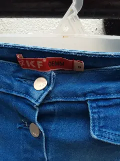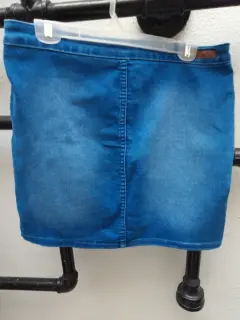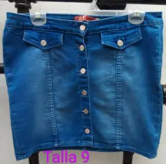 Falda mezclilla. Mini falda de mezclilla deslavada, strech, talla 9, recta