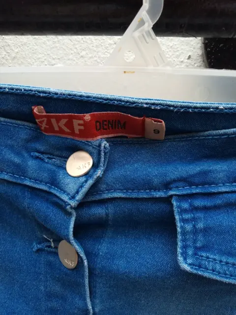Mini falda de mezclilla deslavada, strech, talla 9, recta