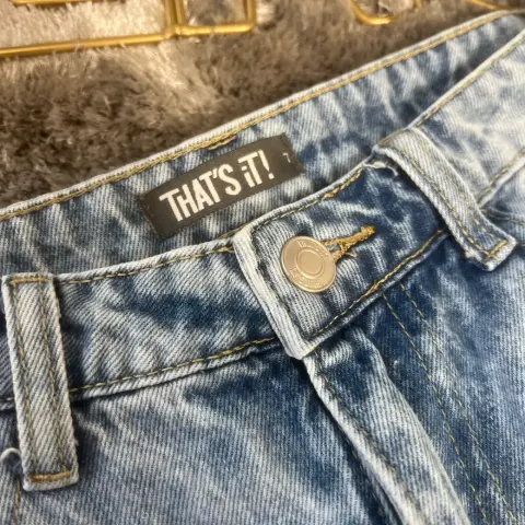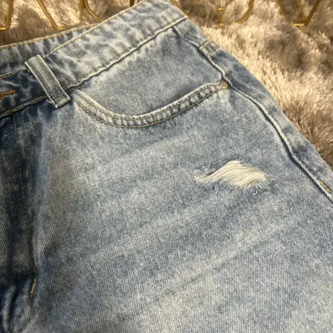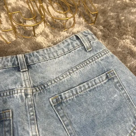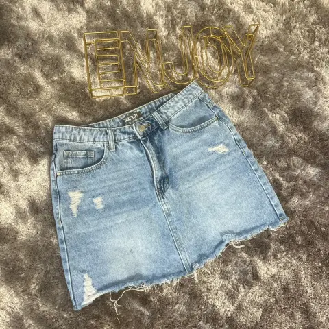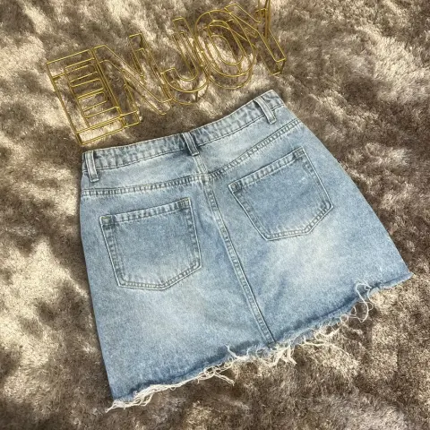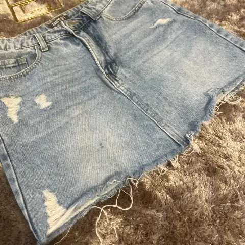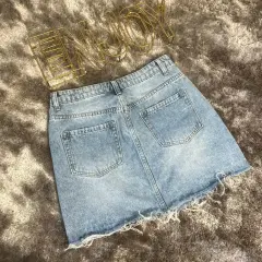 Preciosa falda corta. Tiene detalles al frente de roturas. Esta nueva pero me quedo un poco grande. Es talla 7 en azul claro, ningún detalle :)