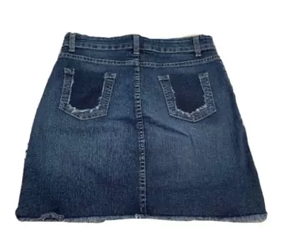 FALDA MEZCLILLA DENIM TALLA 7. Preciosa falda de mezclilla con aplicación de lentejuelas (corazón), los bolsillos de enfrente son perfectamente te funciónales Medidas cintura 38 cm, cadera 43 cm y largo 40 cm