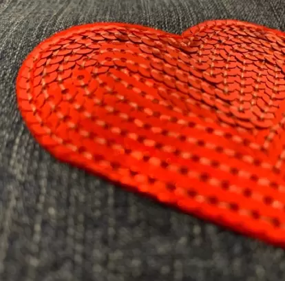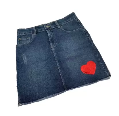 Preciosa falda de mezclilla con aplicación de lentejuelas (corazón), los bolsillos de enfrente son perfectamente te funciónales Medidas cintura 38 cm, cadera 43 cm y largo 40 cm