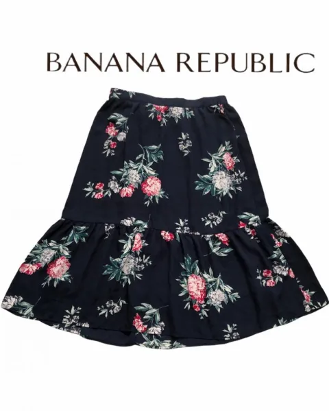 Falda midi BANANA REPUBLIC. Falda azul con flores en tonos rosa, marca banana REPUBLIC, talla M, tiene forro azul para que no se trasparente, NUEVO Y CON ETIQUETA