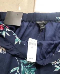 Falda azul con flores en tonos rosa, marca banana REPUBLIC, talla M, tiene forro azul para que no se trasparente, NUEVO Y CON ETIQUETA