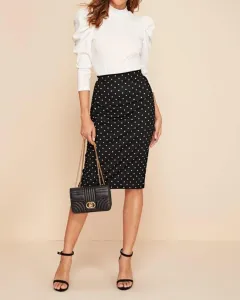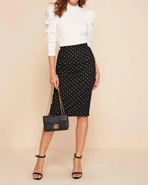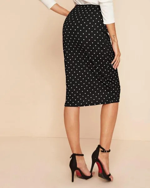 Falda Midi de Lunares Shein. Falda Midi Negra con puntos blancos talla M, nuevecita!!!!