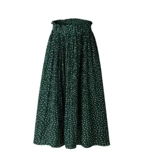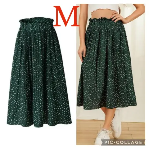 Falda Midi pisada Polka dot. Moderna Falda Plisada con estampado de lunares.Nueva sin etiquetas, solo tiene la de la talla.Talla MCintura alta con resorte que cubre tu estómago.Mismo modelo que la imagen 1Sin detalles y en perfectas condiciones.Tela 35% algodón y 65% poliéster.Tiene bolsas a los laterales.Cintura sin estirar el elástico son 34 cm pero estira hasta 47 cm..... es resorte grueso.Largo: 85 cmEstilo bohemio.