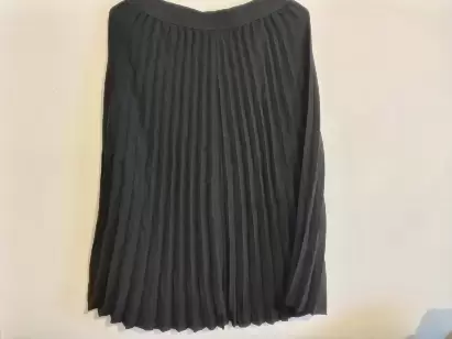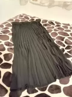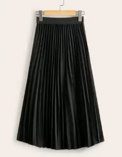 Falda Midi plisada, color negro. Cintura con elástico. Sin forro. Largo 73.5 cm contorno cintura 70 - 114 cmComposición 100%Poliéster