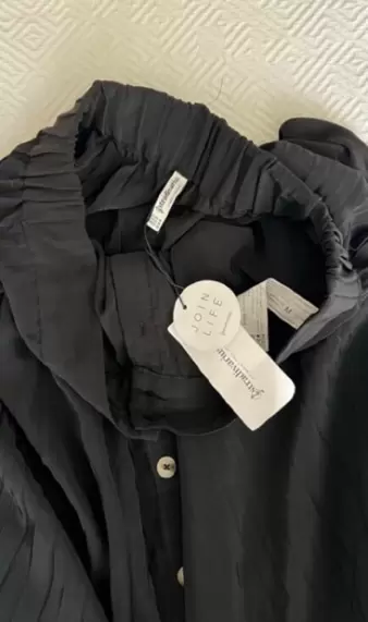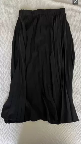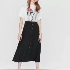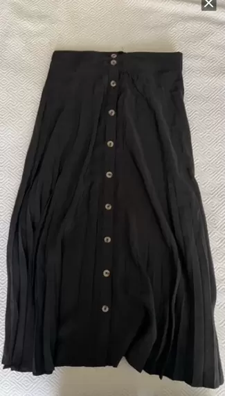Falda midi tablonesColor negro con botones delanterosTalla M 28MxTiene elástico en la cinturaLargo: 77 cm