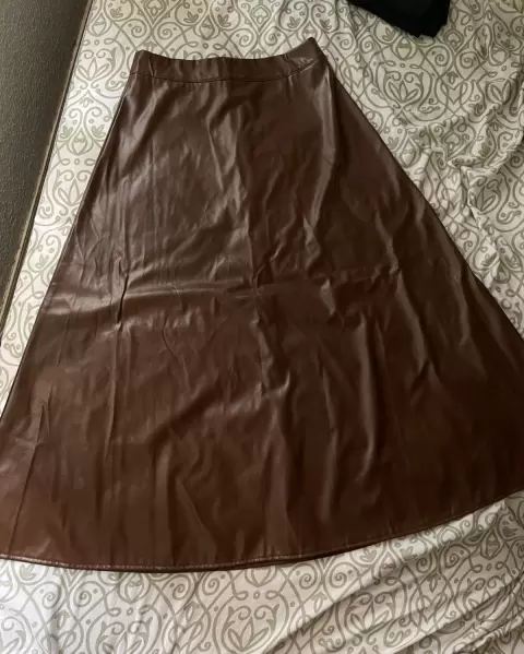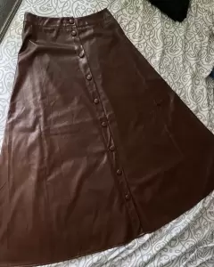 Falda midi tipo piel color café. Esta hermosa falda no me quedo 😕, está completamente nueva todo está intacto desde los botones hasta el color, es un poco gruesa. Las medidas son: Contorno cintura: 74cm, caderas 108cm, largo 92cm