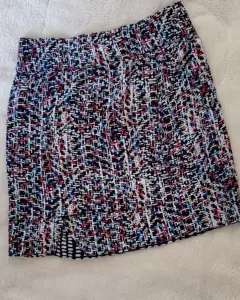 Falda multicolor, la tela es algodón, es ajustada. Va en diferentes capaz. En la cintura trae elastico.MEDIDASCintura: 38 cmCadera: 44 cmLargo: 47 cm