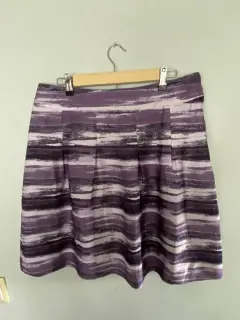 Falda multicolor. Bonita falta falta morada, completamente nueva.Cierre en un costado y trae forro TALLA 12Medidas aproximadas:Cintura 43 cmLargo 57 cm