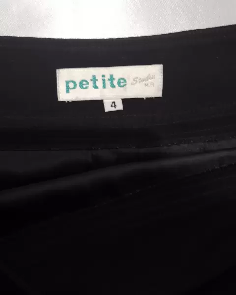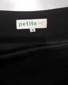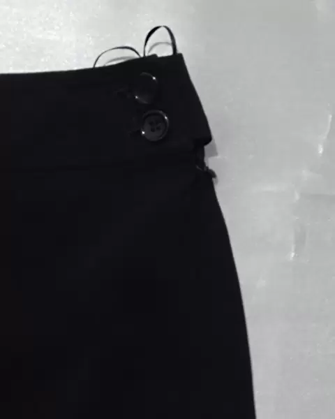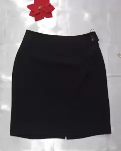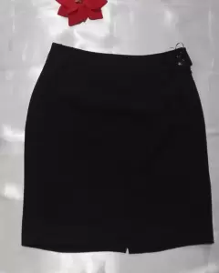 Falda negra, con cierre y botones de lado. Una tela suave y de un negro intenso. Cintura 38 centímetros y largo de 54 centímetros