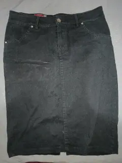 Falda negra recta. Falda negra de algodón color negro, con una pequeña abertura en la parte trasera, detalles de brillos en los bolsillos delanteros y traseros, muy amplia de la cintura, espandex