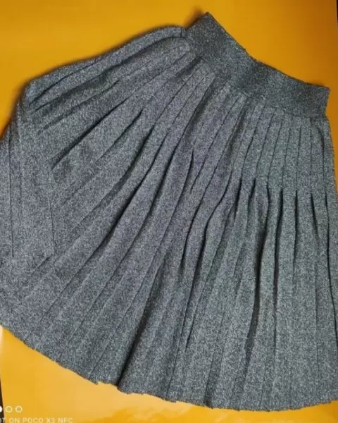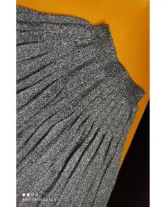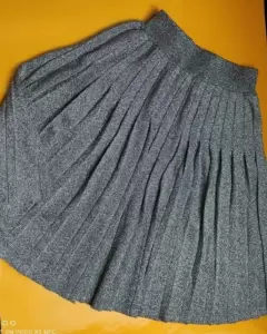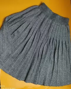 ❤️ Falda color plata, tela brillosa, tableada, resorte en cintura, mide 56 cm de circunferencia en cintura pero estira.Es talla extra chica pero puede quedar a talla chica.NOTA: EN EL RESORTE POR DENTRO SE DESCOSIO UN PEDACITO, PERO NO SE VE Y NO AFECTA, NO LO REPARE PARA NO DAÑAR LA PRENDA (SE MUESTRA EN PENÚLTIMA FOTO)
