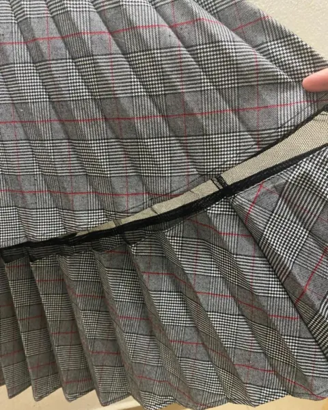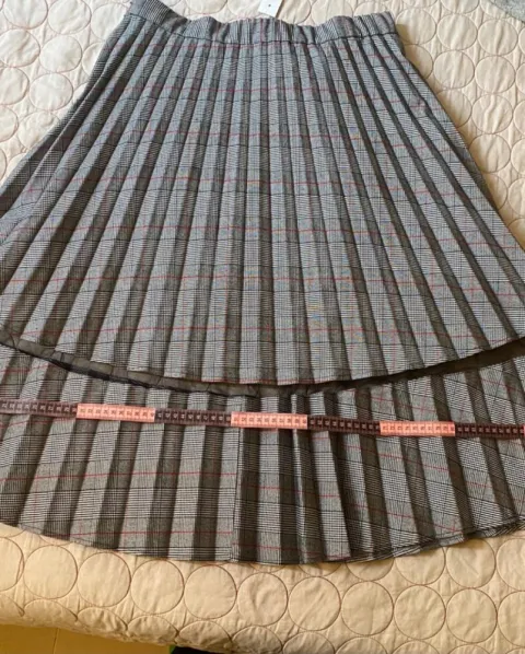 Talla plisada midi con cuadros, es de dos capas y tiene un tul hermoso entre capas, está súper estilosa. Nueva con etiqueta la compre en NY precio a pandemia y ahora ya no me queda :(