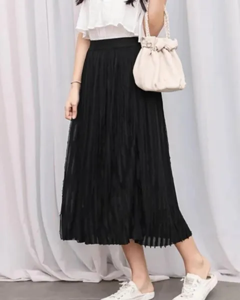 FALDA NUEVA! linda falda 3/4 arriba de tobillo plisada super fresca y a la moda, talle alto con resorte en la parte de la pretina para un mayor ajuste.