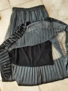Falda negra plisada con fondo, no transparenta, talla chica, sin detalles, usada una ocasión, se puede utilizar con tenis o calzado más formal
