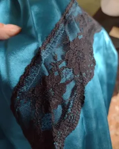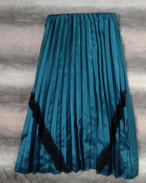 La falda plisada es metálica, y tiene encaje negro en la parte de abajo. Totalmente nueva