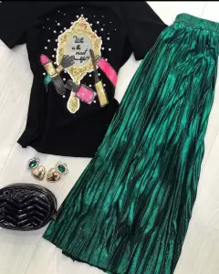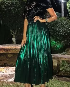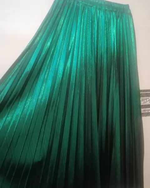 Hermosa falda plisada en color verde metalica con elastico en la cintura es talla S pero da a una talla M NuevaMedidas de cintura de 65 a 80 cm