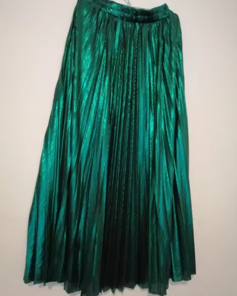 Falda plisada verde metalica. Hermosa falda plisada en color verde metalica con elastico en la cintura es talla S pero da a una talla M NuevaMedidas de cintura de 65 a 80 cm