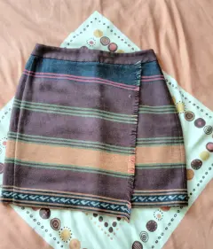 Preciosa falda rayada de colores, tela de lana, forro de poliéster, cierre en la parte trasera.A pesar de ser corta es calientita, la tela frontal simula ser envolvente pero no se abre, ya q va cosida del costado como se puede ver en las fotos. Su corte es ligeramente en "A"L:45C:35Termina en ancho de 47Esta en perfecto estado, su cierre funciona bien