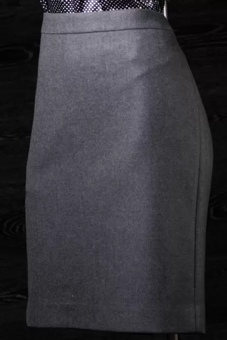 Falda recta color gris oxford en excelente estado. Con forro y abertura trasera para caminar con comodidad. Es talla 4, mide 38 cm de cintura (un lado), 45 cm de cadera (un lado) y 58 cm de largo.