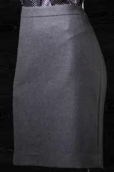 Falda recta de vestir gris oxford. Falda recta color gris oxford en excelente estado. Con forro y abertura trasera para caminar con comodidad. Es talla 4, mide 38 cm de cintura (un lado), 45 cm de cadera (un lado) y 58 cm de largo.