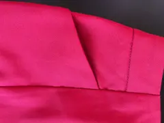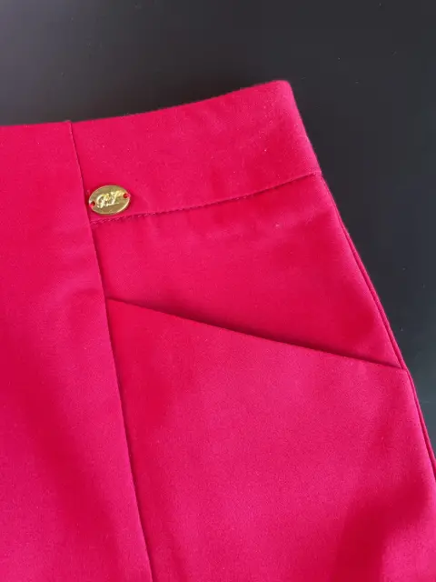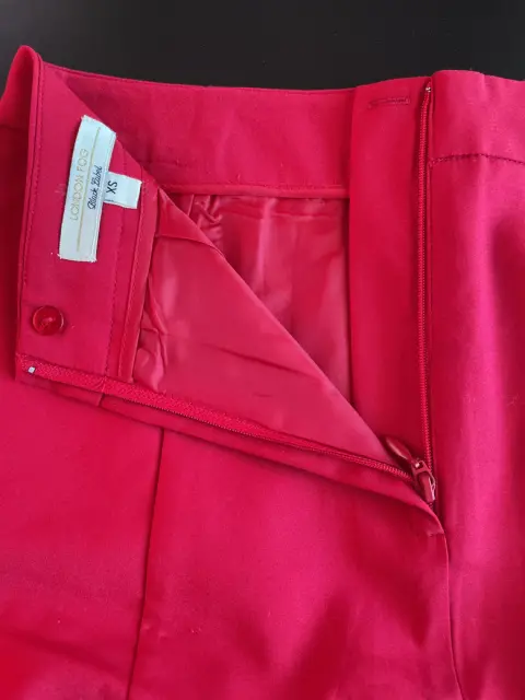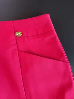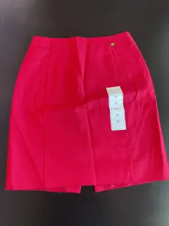 Falda recta color rojo, arriba de la rodilla con bolsas frontales, poliéster talla extra chica