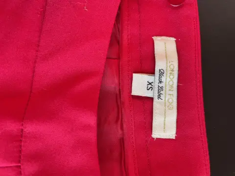 Falda Roja. Falda recta color rojo, arriba de la rodilla con bolsas frontales, poliéster talla extra chica
