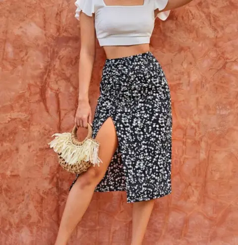 Falda shein dama. Talla S, usada como nueva $150, tipo circular con abertura al frente color blanco con negro.