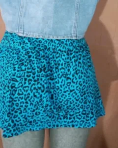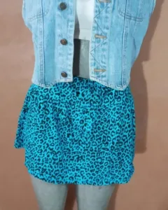 Linda Falda con short animal print en tono azul turquesa con manchas negras..talla 3 S da a 5, ideal para una salida casual con tenis