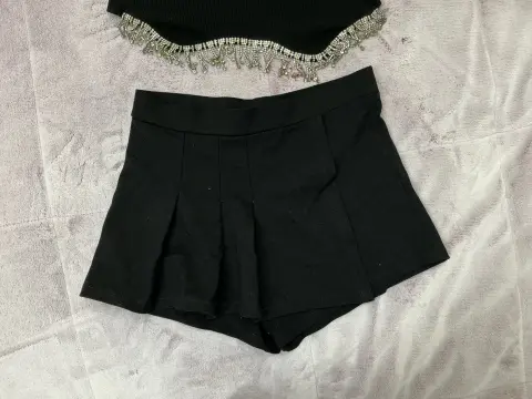 Falda short tableada en color negro , talla m , amolda precioso y es muy versátil
