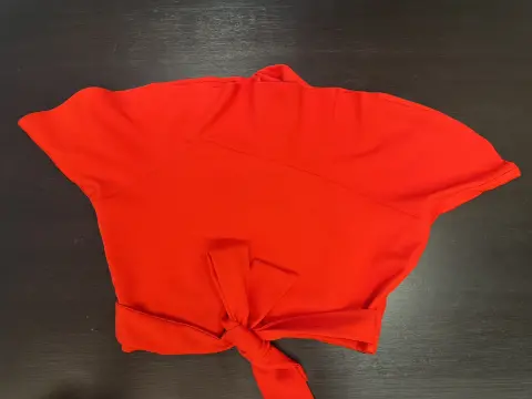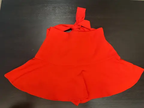 Falda Short Zara Roja de olanes. Falda corta naranja de olanes con cinta para moño con short Nueva Marca Zara Talla M/28