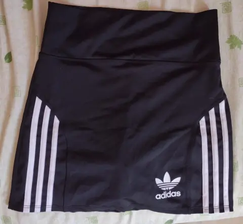 Falda shorts nueva. Falda shorts talla mediana nueva de licra, color negra con ratas blancas marca Adidas