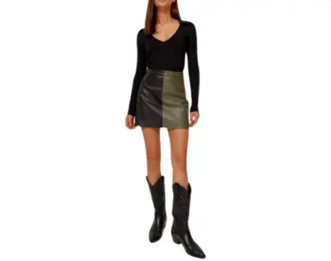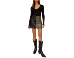 Falda STRADIVARIUS cuero. STRADIVARIUS Falda corta de Piel Sintética. Bicolor verde y negro. nueva con etiqueta.