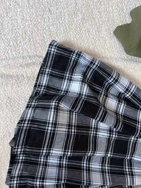 falda tableada. talla: mediana medidas: cintura 68 cm, cadera 102 cm, largo 41 cm