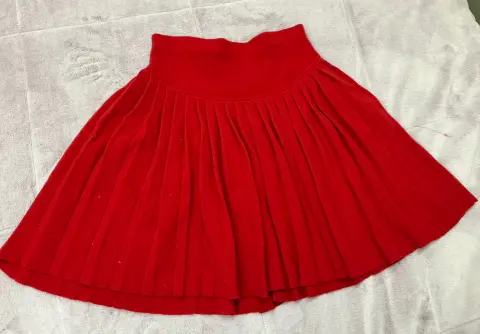 Falda tableada roja , tipo estambre , marca europea , tiene un vuelo muy padre , versátil y cómoda