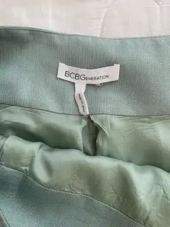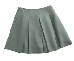 Falda verde plisada un poquito arriba de la rodilla sin ningún detalle es con cierre de lado