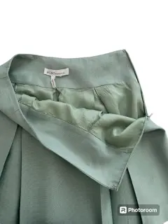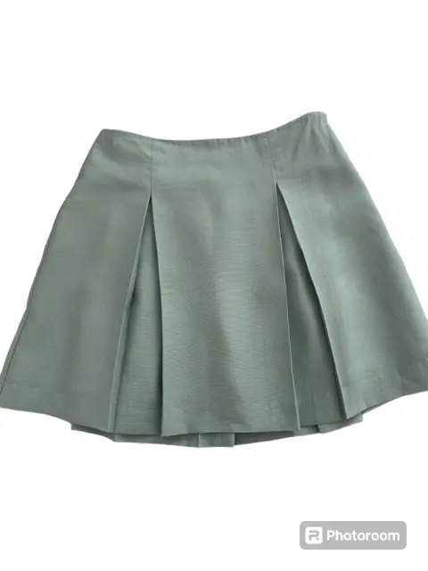 Falda tableada verde. Falda verde plisada un poquito arriba de la rodilla sin ningún detalle es con cierre de lado
