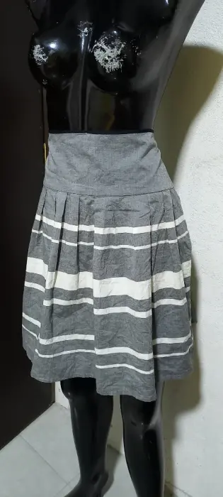 Falda tableda gris rallado fresca y elegante. Gracias por tu visita ..En esta ocasión te traemos:..................................................................................TALLA 8MARCA ANN TAYLORCOLOR GRIS CON BLANCOSTRECH NOTELA ALGODONMADE IN VIETNAMMEDIDAS CINTURA 42 CM CADERA 52 CM LARGO 52 CM Las medidas son de lado a lado de la prenda