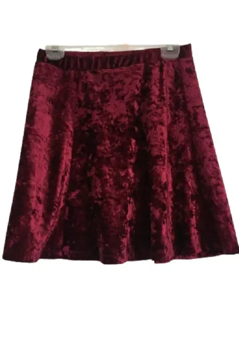 Falda de terciopelo color vino, corte "A". Marca Redsky. Cintura elástica, talla M