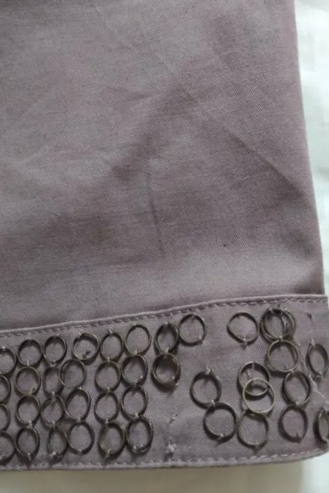 Falda tipo lapiz con arillos. Falda casual tipo lapiz con detalle de argollas ala cintura, en la parte inferior izquierda ya se le cayeron algunas. Medidas: cintura 39 cm, largo 51 cm.