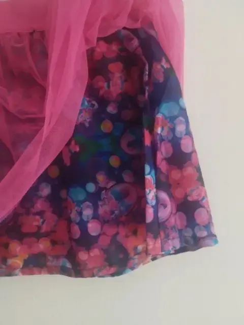 Falda Tutú Trolls talla 6. Falda tipo tutú de Trolls talla 6 años Tela de tutú rosa y debajo tela estampada Con elástica en la cintura